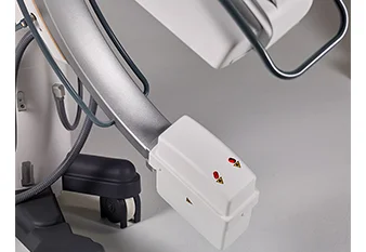 Doubles centreurs lasers (option), côté tube et côté capteur, pour un positionnement sans rayon-x et quel que soit le positionnement de l’arceau.